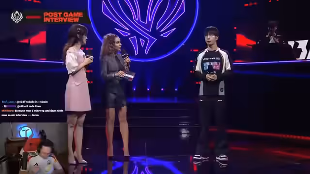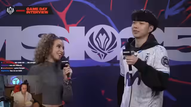10:56:36Eine reflexive Diskussion über die Antriebsfaktoren von professionellen Spielern. Es wird ein Zitat von Chovy analysiert, der sich primär durch den Wunsch nach Sieg und Dominanz motiviert sieht. Dies wird als positiver und starker Antrieb bewertet. Eine Gegenüberstellung mit der aktuellen Situation von T1, die stark unter Druck steht. Auch der Moderator beschreibt seine eigene Nervosität bei Spielen von Timon, er vertraut jedoch dem Team.