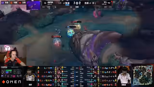 10:00:13T1 gelingt es, das Blatt zu wenden, indem sie einen perfekt getimerten Gegenangriff starten. Durch eine dreiseitige Flanke mit Nico und Annie überraschen sie CFO und gewinnen den Teamfight knapp. Keria überlebt knapp und sichert so den entscheidenden Punkt. Der Sieg im Fight sichert T1 nicht nur das Objective, sondern gibt ihnen auch das nötige Momentum, um das Spiel wieder unter ihre Kontrolle zu bringen und das Blatt zu wenden.