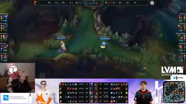 03:33:17Der Streamer beginnt die Analyse des ersten Spiels gegen Ross mit der Besprechung der Draft-Entscheidungen. Es werden potenzielle Ban-Strategien wie Kassante diskutiert, da der gegnerische Top-Laner wahrscheinlich diesen Champion spielen werde. Der Spielverlauf wird detailliert geschildert. Der Jungler von G2 North, Pasu, führt einen Level-1-Invasion aus, die zu einem massiven Vorteil für sein Team führt. Dieser Play wird als extrem kreativ und dominant beschrieben, da er den Gegner inaktiv macht. Der Gegner, Vayne, wird dadurch frühzeitig gelähmt und kann sich nicht ins Spiel einbringen. Der Sieg von G2 North wird als ungefährdet und als Ergebnis dieses frühen, klugen Plays gewertet.