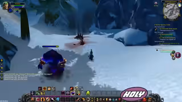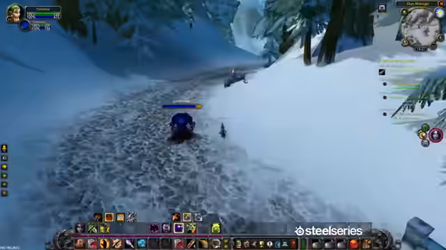 01:01:37Die Gruppe plant den Kampf gegen ein Elite-Mob im Gebirgstal. Diskussionen drehen sich um Kiting-Techniken über Zäune und den Schutz des treuen Begleiters Nocturne. Dabei werden Quests für Seelensplitter und die Amberstil Ranch besprochen, während neue Herausforderungen im Berggebiet auftauchen.