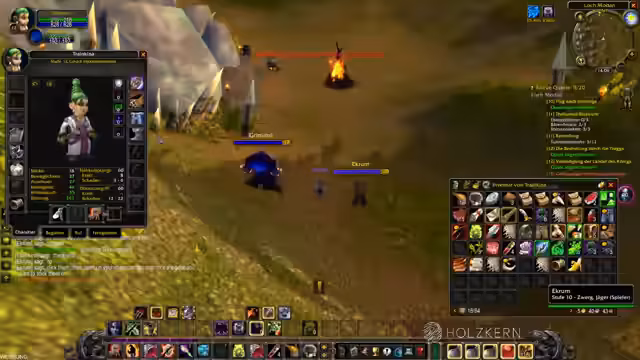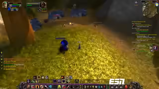02:30:56Ein Spieler erklärt, dass Erste-Hilfe-Verbände nicht im Kampf genutzt werden können und überlegt, sie in einem Dorf zu erlernen. Es werden Addons wie 'Questi', 'Bagnon' und 'Necrosis' vorgestellt, wobei letzteres als essenziell für Hexenmeister beschrieben wird. Nach Schwierigkeiten, Questgeber zu finden, wird die Bewegungsoptimierung mit automatischem Rennen diskutiert. Der Spieler erwähnt den Start des Events am 27. und dass alle Charaktere neu starten müssen.