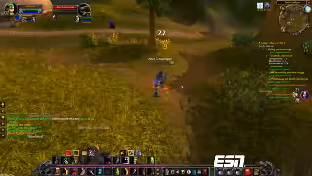 02:22:06Spieler diskutieren die ineffiziente Quest-Ausführung in Gruppen, da jedes Mitglied Items einzeln looten muss. Sie erkunden eine Eber-Hotzone und optimieren das Looten, während sie über Inventarprobleme sprechen. Ein Spieler erhält 5 Gold von einem anderen Spieler und erwägt, verbotene Addons wie 'Junkseller' zu nutzen, um Zeit beim Verkaufen von Müll zu sparen. Es folgt eine Diskussion über Erste-Hilfe-Fähigkeiten und deren Nutzen im Kampf, da Verbände unterbrochen werden können.