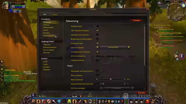 00:10:00Der Streamer empfiehlt dringend die Aktivierung von Schnellplünderung und der Interaktionstaste (z.B. F1), die es ermöglicht, Questgegenstände oder Loot durch Wände aufzusammeln und NPC-Interaktionen zu beschleunigen. Für die Kamera wird ein erhöhter Zoomgrad für bessere Übersicht vorgeschlagen, zusammen mit der Deaktivierung der automatischen Verfolgung. Wichtige Kampfeinstellungen sind die Anzeige von Kampftexten (z.B. bei niedriger HP), der aktivierbare Bildschirmeffekt bei kritischer Gesundheit und die Gegner-Plaketten-Anzeige (z.B. via STRG+V), um mehrere Gegner im Kampf zu überwachen. Abschließend wird der Einblenden gegnerischer Zauberleisten als essenziell für PvP und schwere Gegner bezeichnet.