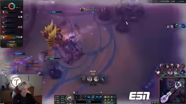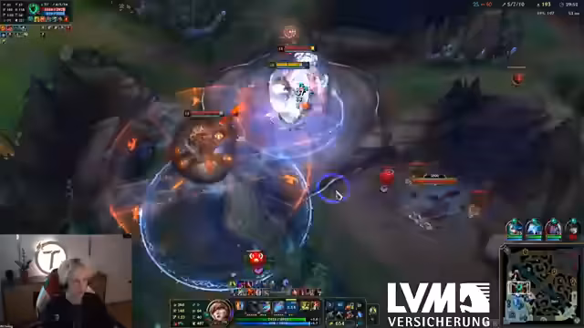 05:57:24Ein geplanter Dive-Angriff in der Top-Lane wird ausgeführt, der jedoch zu einem Tode von Adam führt. Shelfy nutzt seine Teleport-Positionierung, um den Kampf zu initieren. Obwohl Adam kurz stirbt, wird das Ziel des Dives erreicht. Gleichzeitig kommt es zu einem Fehlgriff in der Bot-Lane, bei dem ein Champion verfehlt und ein Teamkamerad durch einen 'Knock-Aff' von Trundle eliminiert wird. Game wird als 'chaos-lastig' beschrieben.