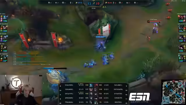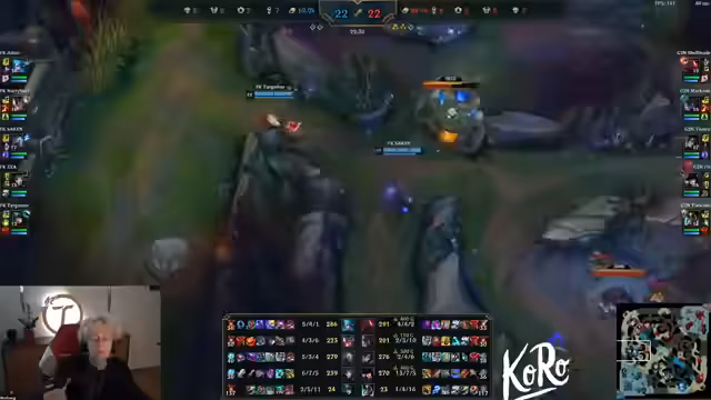 06:53:54Das aktuelle Spielverlauf wird als extrem unorganisiert und blutig beschrieben, mit vielen unkoordinierten Aktionen und Fehlern von beiden Seiten. Es wird kritisch angemerkt, dass das Team bei einem gefährlichen Drag-Engagement Fehler macht, was dazu führt, dass man den Vorteil nicht nutzt und stattdessen unter Druck gerät. Einzelne Spieler wie Caitlyn werden für ihre guten Leistungen gelobt, während andere wie Toasty für ihr schlechtes K/D-Verhältnis und ihre Fehlentscheidungen kritisiert werden, was das Gesamtergebnis negativ beeinflusst.