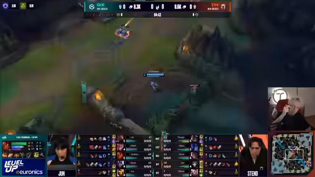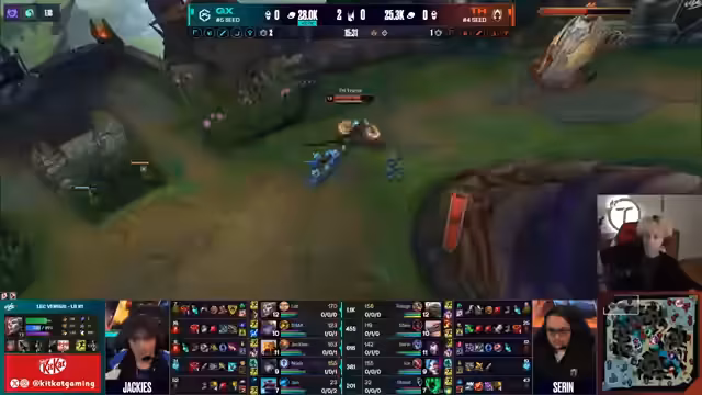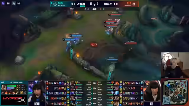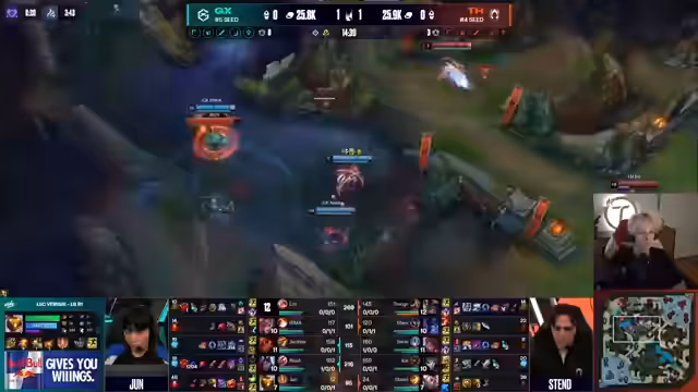 08:35:59Giant X beginnt das Spiel mit einer aggressiven Jungler-Strategie. Der Jungler ghosted erfolgreich die Bot-Lane von Team Alex, was zu einem frühen Todesfall von Corki und der Zerstörung der Welle führte. Giant X konnte so schnell den ersten Drachen sichern. Im weiteren Spielverlauf zeigt Team Alex Probleme in der Entscheidungsfindung. Nah, der Top-Laner von Team Alex, spielt zwar sehr stark, gruppiert sich jedoch nicht, was seineImpact im Spiel limitiert. Team Alex verliert mehrere entscheidende Teamfights und Objectives wie den zweiten Drachen und den Nashor.