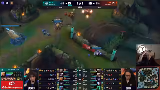 05:54:52Im Top-Lane Match-up wird die Situation bewertet, bei der ein Spieler Nachteile als 'Firster' durch einen Gang erleidet, aber dennoch einen Double-Kill in der Bot-Lane landet. Es werden die ex-NEC-Spieler im Team erwähnt und ihre Favoritenrolle im Vergleich zu dem Streamer-Team begründet, das letztmals mit einem klaren Ergebnis von 0-5 unterlegen war. Dies wurde jedoch als allererster Scrim nach Tryouts eingeordnet und nicht als repräsentativ gewertet.