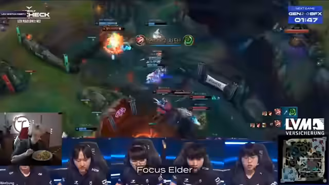 01:17:49Gen.G. zeigt eine überlegene Teamkommunikation und führt präzise Fights. Nachdem BNK den ersten Drake nicht verteidigt, nutzt Gen.G. den Bounty-Vorteil, um BNK zu pushen. Trotz einem anfänglichen Nachteil in der Mid-Lane stabilisiert sich Gen.G. und zieht durch drei gewonnene Lanes davon. Das Team kämpft als Einheit und erzwingt Fights, bei denen BNK aufgrund fehlender Koordination unterliegt. Gen.G. macht den Sieg durch kluge Objektivsteuerung fest.