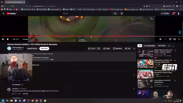 02:52:18Ein Highlight des Streams ist das Developer-Update zur Shyvana-Umgestaltung. Der Produktmanager 'Ed' betont, dass Feedback von Main-Communitys eingeholt wurde. Ihr Q-Skill bleibt als Attack-Reset erhalten, und die Passive erhält mehr Hilfe in der Drachenform. Der Streamer bewertet den Rework positiv, findet ihn aber für ein Update, auf das sich die Community drei Jahre lang gefreut hat, nicht grundlegend genug. Bei der Betrachtung der Skins wird der Classic-Skin als gelungen gepriesen, während andere Skins wie die Championship- oder Ruin-Skin als weniger ansprechend empfunden werden. Die Diskussionen enden mit dem Wunsch nach einem epischeren Drachen-Design, das sich mit den Stacks der Passive skaliert.
