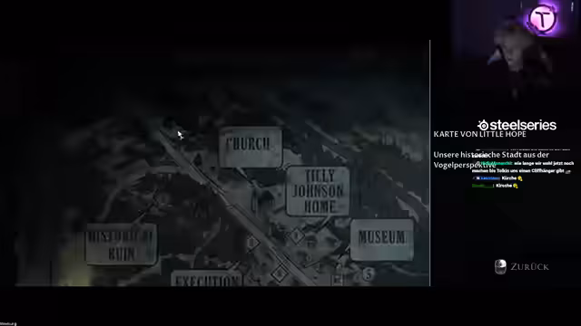 06:55:24Die Gruppe stößt auf gruselige Hexensymbole und eine erhängte Puppe, was eine unheimliche Atmosphäre schafft. Megan, eine der Figuren, wird in diesem Zusammenhang erwähnt, und die Gruppe diskutiert über Aberglauben. Sie treffen auf ein kleines Mädchen namens Mary, das eine selbstgebastelte Puppe bei sich hat, die einer der Figuren ähnelt. Mary bittet die Gruppe, mit ihr zu spielen, und es wird klar, dass sie eines von drei Kindern ist, die in der Geschichte eine Rolle spielen. Der Nebel verwirrt die Gruppe und dreht sie immer wieder um, sodass sie den eigentlichen Pfad nicht verlassen können. Ein Kurator fordert die Gruppe eindringlich auf, den Busfahrer zu finden und den Nebel zu durchdringen. Die Gruppe macht sich auf die Suche nach dem Busfahrer, um die mysteriösen Ereignisse in Little Hope aufzuklären. Sie finden eine alte Flasche und lesen weitere Artikel über Geisterstädte und die Geschichte von Little Hope, die durch die Schließung der Textilfabrik und die Abwanderung der Bevölkerung geprägt ist. Ein Plakat für ein Drama namens 'Die Hexe von Edmonton' aus dem Jahr 1970 könnte Hinweise auf die aktuellen Ereignisse geben.