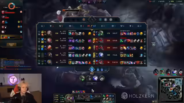 02:02:11Die anhaltende Frustration über die 'Losing Lanes' in jedem Spiel wird deutlich, da es unmöglich scheint, Camps zu farmen, ohne gespottet oder invadiert zu werden. Die Botlane wird erneut als Hauptproblem identifiziert, da sie keine Prio bietet und das Team in eine schwierige Lage bringt. Die eigene Rolle wird als 'useless' wahrgenommen, wenn man ständig in Unterzahl kämpfen muss und das Team nicht koordiniert agiert. Es werden 'verzweifelte Plays' gesucht, um das Spiel zu drehen, da das Team 'nichts zu verlieren' hat und jeder kleine Erfolg als Bonus angesehen wird. Die Schwierigkeit, gegen übermächtige Gegner wie Olaf zu bestehen, wird hervorgehoben, da er zu stark ist und das eigene Team nicht mithalten kann. Die ständige Konfrontation mit drei Losing Lanes in jeder Runde führt zu einer tiefen Resignation und der Frage, wie man das Spiel überhaupt noch spielen soll. Trotz der hoffnungslosen Situation wird der Kampfgeist nicht aufgegeben, und es wird versucht, durch riskante Aktionen und das Ausnutzen von Gegnerfehlern doch noch einen Sieg zu erringen. Die Bedeutung von Bounties und die strategische Nutzung von Fähigkeiten wie der Ashe-Ultimate zur Anwendung von Anti-Heal werden als potenzielle Game-Changer diskutiert. Die Hoffnung, durch einen Kill auf Ashe und die Sicherung des Drachen das Spiel zu wenden, bleibt bestehen, auch wenn die allgemeine Situation als 'lowkey fucked' beschrieben wird.