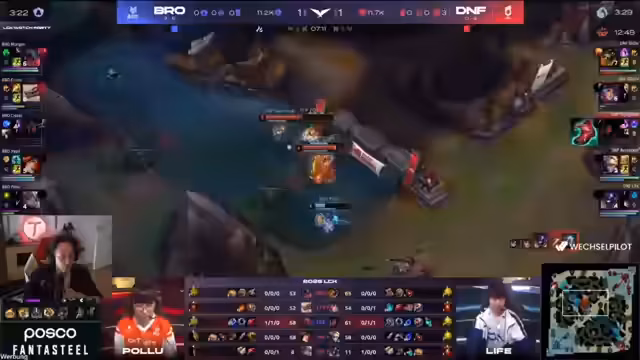 01:59:34Das Match zwischen den Bros und DNF steht kurz bevor. DNF hat ein neues Line-up, bei dem der General durch GroKo ersetzt wurde. Dies wird als potenzieller Verrat an den Bros empfunden. Die Bros haben nach einer Niederlage gegen DRX dringend jeden Sieg benötigt, um die Playoffs noch zu erreichen. Trotzdem sieht der Sprecher in DNF, mit 0 Siegen, den idealen Gegner, um diesen wichtigen Matchpunkt zu holen, da es als das denkbar einfachste Spiel der Rückrunde gilt.