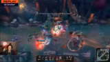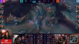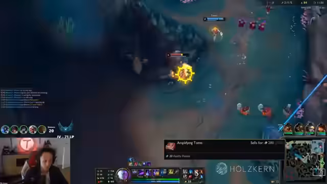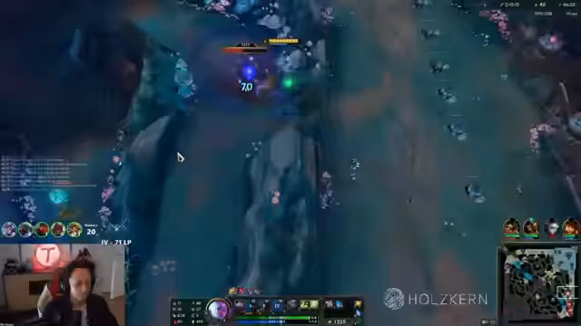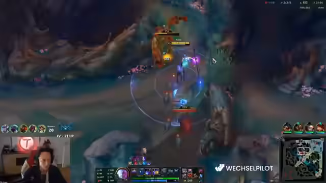 05:42:31Der Streamer beschreibt ein gescheitertes Jungle-Invasion, bei dem er von dem gegnerischen Warwick anvisiert und zurückgedrängt wird. Obwohl er den Flash-Save schaffen konnte, hat er dabei wertvolle Zeit verloren. Im selben Moment kommt es zu einem gegnerischen Fehler, da der gegnerische Viktor einem Q-Bug ausgesetzt ist und stirbt. Dieser ungeplante Kill gibt dem Streamer und seinem Team eine Gold- und Momentum-Advantage, die sie nun für weitere Objektive nutzen wollen.
