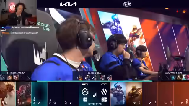 09:02:10Bevor das Spiel von BDS gegen Giant X beginnt, analysiert der Streamer die Drafts und die aktuelle Situation der Teams. Er betont, dass es sich um ein 'sehr wichtiges Game' handelt, da beide Teams dringend Siege für ihre Playoff-Chancen benötigen. Der Streamer beleuchtet die Rollen der Mid-Laner, insbesondere 'Jacky' von Giant X und 'Nuklear' von BDS, und bewertet deren Spielstile und Statistiken. Er sieht in Jacky einen Spieler, der zwar öfter stirbt, aber mehr 'Games carrying' kann, was im wichtigen Spiel entscheidend sein könnte.