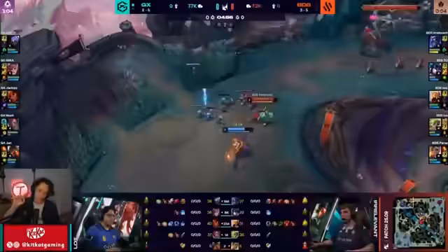 03:20:38Die anfänglichen Bedenken des Kommentators bestätigen sich im Spielverlauf. Der Top-Lane-Spieler der Bros mit Yorick verliert sein Matchup klar und wird als nutzlos eingestuft. Im Gegenzug dominiert die AD-Carry der DN Freaks ihr Lane. Das kommentieren die Beobachter als klassisches Beispiel dafür, wie ein verlorenes Lane-Juwel ein gesamtes Game prägen kann. Trotzdem versuchen die Bros noch ein Comeback, doch der Gold- und XP-Vorteil der DN Freaks wächst unaufhaltsam an, was den Kommentator zu der resignierenden Aussage veranlasst, dass das Game praktisch schon verloren ist.
