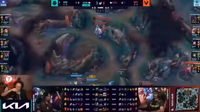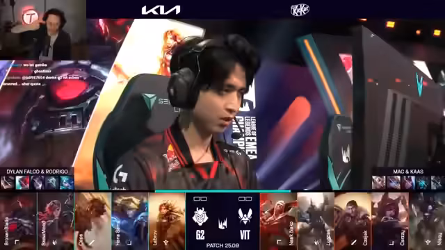 11:02:20Gegen G2 geht es für Vitality um einen Sieg, der sie fast sicher in die Playoffs bringt. Analysten bewerten die Drafts beider Teams. G2 vermeigt traditionell Broken Champions, während Vitality auf starken Mid-Lane-Picks setzt. Ein wichtiger Punkt ist die Wahl von Alistar Support, da viele andere Optionen bereits verbannt sind. Viktor wird gegen Talon als Antwort auf Talia gesehen.