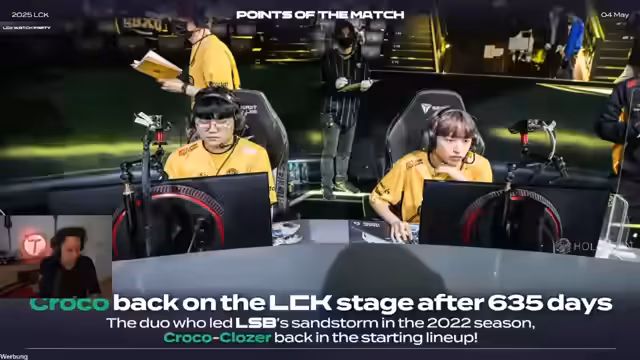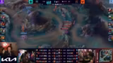 11:17:17Während des Spiels werden taktische Entscheidungen der Spieler kritisch bewertt. So wird Niskis (KT, Support) Entscheidung, sich töten zu lassen, als strategisch klug analysiert. Sein Tod ermöglichte seinem Teammate Narako, mit Tempoboots früher auf der Bot-Lane zu erscheinen und den Turm zu retten. Der Kommentator hebt hervor, dass solche, auf den ersten Blick seltsam erscheinenden Plays, im Kontext des Spiels sinnvoll sein können. Er betont die Wichtigkeit von Map-Bewegung und Ressourcen-Management im Pro-Spiel.