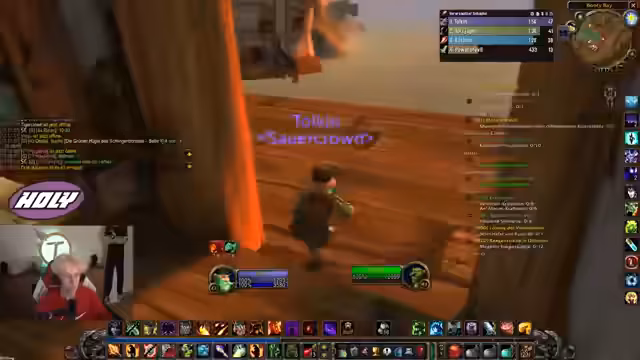 01:11:46Der Streamer befindet sich in einer riskanten Situation in Uldaman, da er gegen andere Spieler, die ebenfalls die Quests erledigen wollen, antreten muss. Er hofft, dass die Trolle respawnen, und möchte ihnen helfen, um den Spot nicht selbst zu gefährden. Ein anderer Spieler erscheint, und es kommt zu einer Diskussion über die Spielregeln. Es ist erlaubt, Mobs nebeneinander zu farmen, aber nicht absichtlich zusammenzuspielen. Nachdem sie einige Mobs geklaut haben, fällt der Streamer in einen Horde-Boss, was eine dramatische Wendung bedeutet.