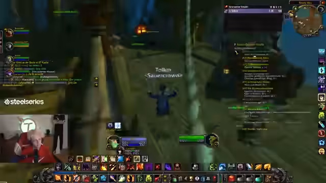 01:01:53Der Streamer erkundet die Ruinen von Zul'Dare, ein Gebiet, das der Chat als gefährlich beschreibt. Es gibt Diskussionen über PvP-Flagging, wobei der Streamer eine unangenehme Erfahrung mit Horden-Wachen schildert, die ihn unbeabsichtigt in PvP kämpfen ließen. Das Gebiet hat eine hohe Mob-Dichte, was das Questen erschwert, und es besteht die Sorge vor Respawns während des Kampfes.