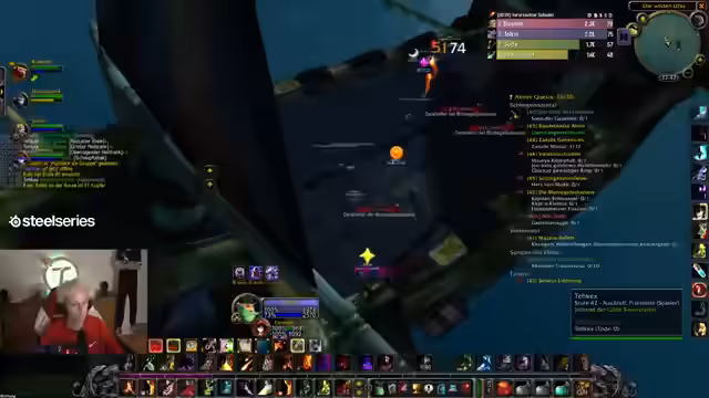 15:34:43Ein komplexer Dungeon-Kampf beginnt mit der klaren Zuweisung von Rollen. Der Streamer agiert als Tank, während andere Caster und Heiler für ihre spezifischen Aufgaben verantwortlich sind. Es gibt Kommunikationsfehler und Aggro-Probleme, was zu einem tödlichen Kampf für einige Gruppenmitglieder führt. Die Begegnung erfordert präzise Koordination, insbesondere bei der Kontrolle der Bedrohungen und der Verteilung von Heilung und Buffs.