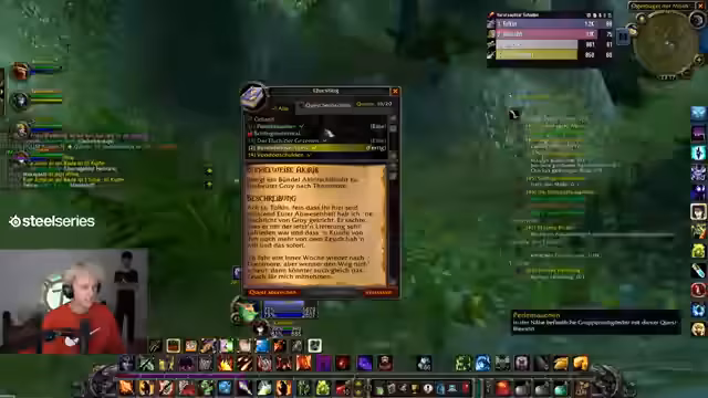 11:46:50Die Gruppe setzt ihre Quests in der Umgebung von Uldaman fort. Der Fokus liegt auf dem Sammeln von Materialien und dem Lösen von Quests wie der 'Schlupftabak'-Quest. Der Streamer plant, ein besseres Geschäft zu schließen und kündigt an, dass der Inhalt in fünf Tagen geleakt wird, was jedoch ignoriert werden soll. Ein wichtiger Punkt ist das Holen eines speziellen Schwertes für Sößle, bevor die Gruppe in das Dungeon geht.