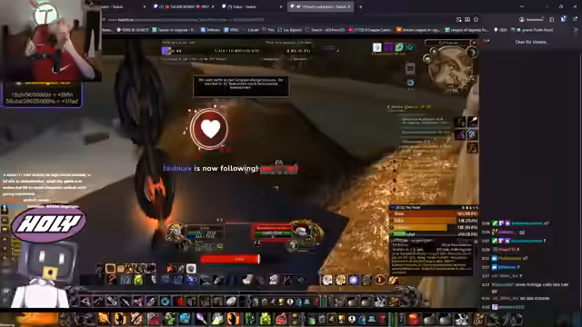 01:32:35Eine große Enttäuschung für den Streamer ist, dass ab Level 40 das Mounted Looting nicht mehr möglich ist. Dies zerstört seine ursprüngliche Erwartung, überall kostenlos Kräuter zu sammeln und effizient zu questen. Er fühlt sich von Blizzard getäuscht und gibt seiner Frustration in einer emotionalen Reaktion Luft, die vom Chat nur noch mit Liebe kommentiert wird. Die daraus resultierende Quest war zudem nicht die profitabelste in Bezug auf Erfahrungspunkte, was die Stimmung weiter trübt.