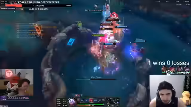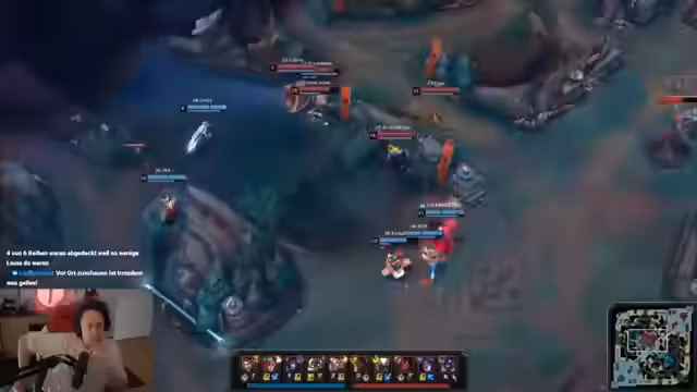 05:37:25Der Streamer beschreibt die Entwicklung des Spiels und die Team-Koordinationsprobleme. Er kritisiert das Verhalten seines Teams, insbesondere den Jungle, der unnötige Risiken eingeht. Er betont die Wichtigkeit von Map-Bewusstsein und der Kontrolle über wichtige Objective wie Drakes. Er analysiert die gegnerische Teamkombination und erklärt, warum sie stark ist, insbesondere Reset-Champions.