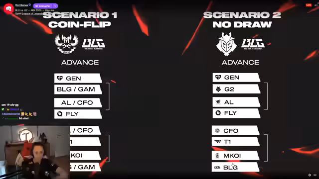 03:07:56Es entwickeln sich Spekulationen darüber, ob G2 das absichtlich verloren haben könnte. Theorie zufolge würde G2 durch eine Niederlage vermeiden, im Lower Bracket direkt auf den MSI-Champion und -Runner-up zu treffen. Stattdessen würden sie auf ein supposedly einfacheres Gegner im Lower Bracket treffen. Dieser strategische Zug wird als möglich angesehen, würde aber ein hohes Risiko bedeuten und könnte als eine Art 'Kopium' für die Fans interpretiert werden, eine Theorie zur Bewältigung der Niederlage.