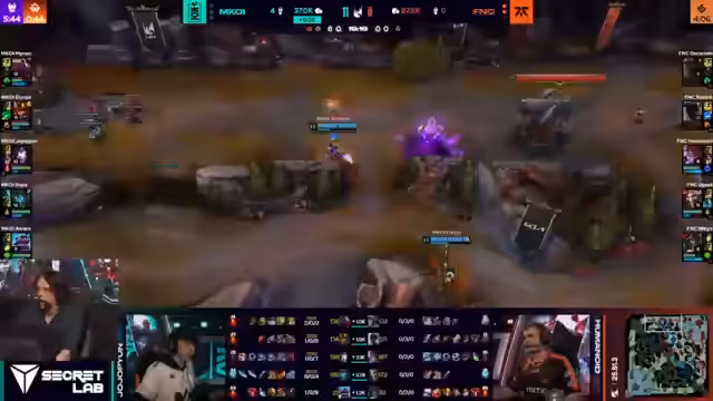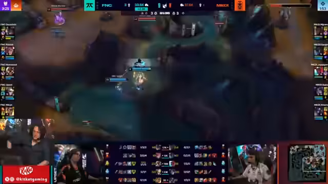 02:44:14Das Spiel wurde durch mehrere kritische Teamfights geprägt. Nachdem Fnatic zuerst zwei Platten bot verloren, kämpften sie zurück und landeten einen starken Teamfight, der Jumonite mit Taliyah eine Rolle gab. Später patzte Mobistar Kois Jungler, was Fnatic ermöglichte, einen wichtigen Draken zu holen und das Spiel ins Late-Game zu retten, nachdem sie im Early Game unterlegen waren. Diese Turniere zeigten die hohe Variabilität der Situation.