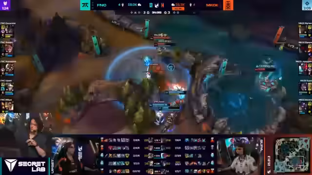 01:55:04Mervyn gelingt ein beeindruckender Solo-Kill am Top-Lane, was die Ressourcenverteilung zugunsten von Movistar verändert. Kurz darauf kämpft sich jedoch JojoPan als Cassiopeia zurück und holt mehrere Kills. Besonders schlimm für Fnatic ist der Tod von Upset durch einen unglücklichen Flash, der ihn in die Cassiopeia-Ult zieht. Dies gibt Cassiopeia einen massiven Goldvorteil.