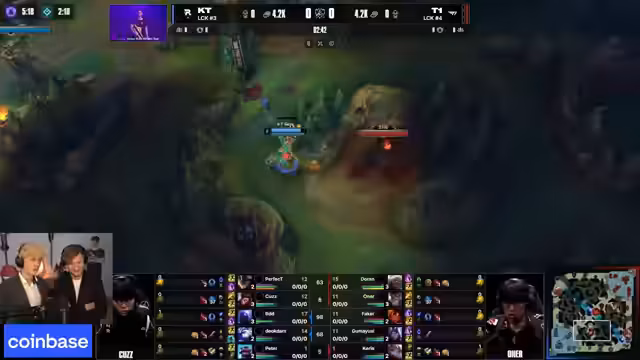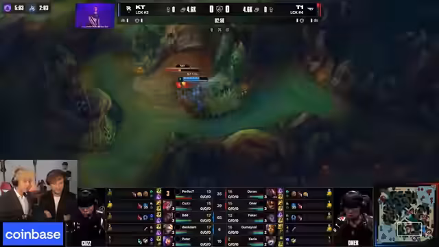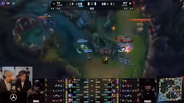 10:15:26Es kommt zu einem technischen Problem im englischen Feed, was zu einer Verwirrung bei den Zuschauern führt. Im Spiel wird Doran von KT gejagt, aber er wird von T1 gerettet. KT ist gezwungen, defensiv zu spielen und verliert dabei einen wichtigen Champion. Der Caster beschreibt den Spielzug als "wahnsinnig" und betont, wie entscheidend es für T1 war, Doran am Leben zu erhalten, um den Druck aufrechtzuerhalten.