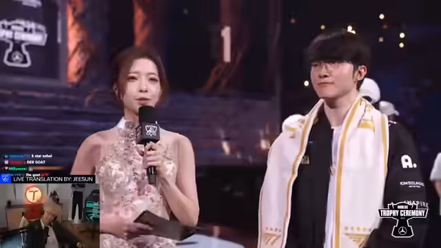 14:23:36T1 setzt sich erneut gegen ein unglaublich starkes KT-Team durch, das als Underdog in das Turnier ging und sich hervorragend behauptete. Trotz der Niederlage wird KT für ihr insanes Teamplay und ihre Fähigkeit, Gen.T zu schlagen, geehrt. T1 erreicht zum vierten Mal in Folge das Finale und gewinnt zum dritten Mal, obwohl sie in der Liga Probleme hatten. Worlds ist T1s Spezialität, und Faker erreicht sein achtes Finale, wovon er sechs gewinnt. Der Alzheimer's Cup ist zurück, und Worlds gehört T1. Doran gewinnt zum ersten Mal die Weltmeisterschaft und hebt die Trophäe als Erster hoch. Faker, Guma, Ouna und Keria werden für ihre Leistungen gelobt, wobei Ouna als MVP vorgeschlagen wird. Guma Yuzi gewinnt den Finals MVP und reflektiert über seinen schwierigen Weg und seine Entwicklung zum besten AD-Carry der Welt. Er bedankt sich bei seinen Fans, seiner Familie, Freunden und seinem Team für die Unterstützung. Die Coaches von T1 zeigen große Emotionen über den Sieg. Der Stream endet mit Danksagungen an die Zuschauer und einer positiven Reflexion über die Worlds.
