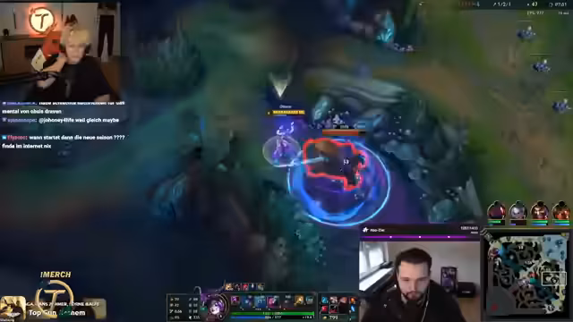 11:10:36KTs Fähigkeit, trotz eines verlorenen Gold-Leads im ersten Spiel, im zweiten Spiel eine starke Leistung zu zeigen, wird als beeindruckend hervorgehoben. Der Baron-Spawn rückt näher, und KT hat bereits Vision in der Baron-Region etabliert. Faker wird von Kassa gesichtet und zieht sich zurück, während BDD mit einem bevorstehenden Deathcap-Power-Spike eine massive Bedrohung darstellt. Es wird diskutiert, ob BDDs Champion-Wahl ausreichend Schaden liefern kann, um das Team zu tragen, da er der einzige Carry mit Kills ist. Sein Spielstil wird mit einem Artillerie-Champion verglichen, der guten Schaden verursacht, wenn er nicht bedrängt wird, aber eher darauf abzielt, Faker und Oner auszuschalten als Doran, der als Bastion gilt. Die strategische Bedeutung von BDDs Deathcap wird betont, da er der Hauptschadensverursacher für KT ist.