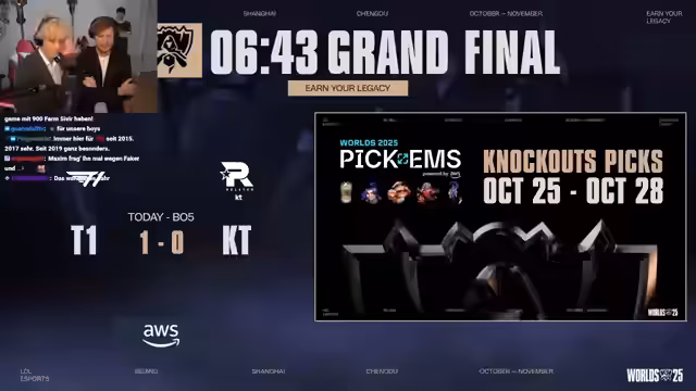 Im Finale der League of Legends-Weltmeisterschaft trafen die koreanischen Teams T1 und KT aufeinander. Der Fokus lag auf der jahrzehntelangen Rivalität, insbesondere dem Duell der Mid-Laner Faker und BDD. Nach spannenden Spielen setzte sich T1 am Ende durch und gewann seinen dritten Weltmeistertitel in Folge. Die historische Leistung von Faker und dem Team stand dabei im Mittelpunkt.