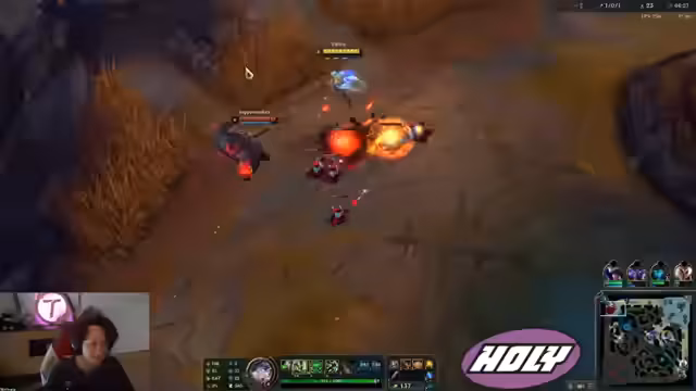 05:03:39Der Streamer beschäftigt sich mit einem intensiven Teamkampf an der Bot Lane. Er warnt vor einem möglichen Gank durch den gegnerischen Yasuo, der sich im Jungle aufhalten könnte. Nach einem verpatzten Teamfight atmet der Streamer durch und analysiert die Situation, in der beide Teams um Ressourcen wie Gromps und Drakes konkurrieren. Er betont die Notwendigkeit von Teamkommunikation und koordiniert Bewegungen mit Teamkollegen wie Jinni und Yoshi, während er gleichzeitig versucht, CS-Vorteile herauszuspielen.