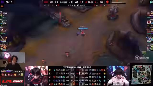 02:37:23Es wird festgestellt, dass das Teamfight verloren geht, unabhängig von Viegos Item-Käufen, und dass Aurora flanken muss. Cream wird für seine Leistung gelobt, während Pace's Fehler, nicht zu flashen, kritisiert wird. Cream portet in die Backline und wird von niemandem beantwortet. JDG läuft das Spiel nicht komplett davon, hat aber ein Golddefizit. 369 wird für seine Rolle gelobt, immer auf die Backline zu springen und zu roamen. Krim hat jetzt wieder Ult dank Malignant. Top Esports ist potenziell schlechter im Front-to-Back-Fight, wenn die Assassinen nicht in die Backline kommen. Jinx' Ult wird als gut bewertet. Das Spiel steht 0-0 für JDG, deren Draft als besser angesehen wird, insbesondere mit den Vego-Items. Phoenix9 wird für einen Missplay kritisiert, aber insgesamt als guter Spieler angesehen. Top Esports wird für sein gutes Spiel gelobt. Ein Hextech-Flash wird als riskant angesehen. Draven erhält einen wichtigen Reset-Kill, aber keinen Cash-In. Scouts Spielweise wird als schlecht bewertet.