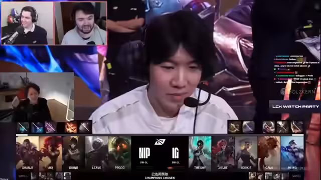 00:01:46Es wurde angekündigt, dass heute das Spiel zwischen Invictus Gaming (IG) und Ninjas in Pyjamas (NIP) mit den Comebacks von Rookie und TheShy sowie Doinb stattfindet. Trotz des laufenden LCK-Streams wird der Fokus auf die LPL gelegt, da dieses Spiel als besonders interessant und sehenswert erachtet wird. Die Entscheidung, die LPL zu priorisieren, basiert auf der Annahme, dass die LPL heute die spannendere Liga ist, insbesondere wegen des Comebacks von TheShy und Doinb, zwei bekannten Persönlichkeiten in China. Es wurde klargestellt, dass die Wahl des Streams nicht von persönlichen Vorlieben abhängt, sondern von der Qualität der Spiele.