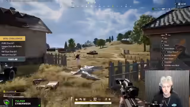 03:16:36Das Duo beginnt ein intensives Spiel, in dem sie in Gefahr geraten. Der Streamer wird weggeschossen und das Duo versucht, sich zu retten. Es wird erwähnt, dass das Mausrad des Streamers kaputt ist, was das Zielen mit dem Zielfernrohr unmöglich macht. Nach einem Crash muss der Partner neu verbinden, was die Runde beendet wird. Nach dem Restart bleibt das Duo jedoch motiviert weiterzuspielen.