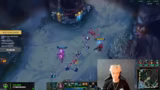 01:00:18Ein sehr blutiges und actionreiches Duo-Spiel gegen einen gegnerischen Kha'Zix entwickelt sich. Der Streamer analysiert die Spielsituation intensiv und gibt Anweisungen, während sein Team einen Nashor in der Base erzwingt. Das Spiel ist von ständigen Kämpfen und Todesfällen geprägt, bis letztlich der Gegner besiegt wird. Der Sieg wird als 'Banger-Game' und ein 'Fortnite'-ähnliches Erlebnis bezeichnet.
