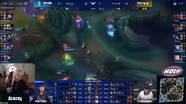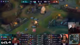 03:13:29Ein heftiger Teamfight entbrennt um den Drachen. Während Damwon den Drake zwingend braucht, gilt Harry als Bonus. Der Teleport des Cannon auf Full Vision verschärft die Situation. Ein riskanter Flanke-Engage von Cannon auf Seraphine scheitert jedoch und führt zu einem tödlichen Focus. Trotzdem schafft Damwon, Ash, Ucaria und Zivu zu flashen, was den Kampf zu ihren Gunsten entschieden hat und ihnen einen deutlichen Goldvorsprung einbringt.