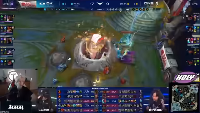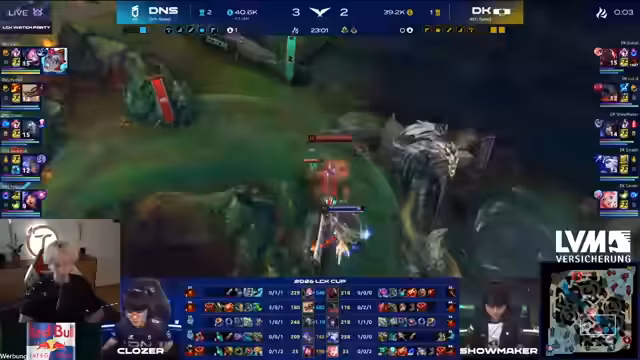 03:09:14Nach einem starken Start von Damwon ist das Spiel bei Drake angekommen. Das Team versucht, eine Falle für Piosik zu legen, indem sie den Drake für sich beanspruchen wollen und auf dessen Reaktion warten. Piosik hat jedoch nur einen kleinen Golem für die Bonus-XP genommen, was eine kluge Entscheidung ist, da Goobies in diesem matchup eine niedrige Priorität haben und ein Bot-Gank effektiver sein kann. Die Dynamik der Draft verspricht ein spannendes Midgame, in dem die Map-Kontrolle entscheidend sein wird.