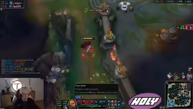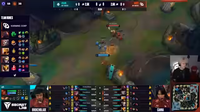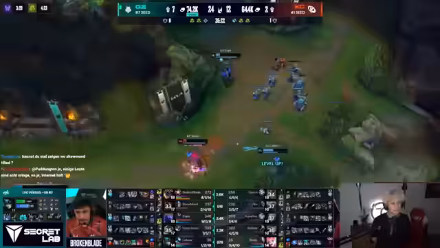 10:17:10Das Game wird von Broken Blade dominiert, der den Top-Laner der Gegner zerstört (gesmurft) und damit einen klaren Vorteil für sein Team schafft. Das Team war bereits im Vorteil, da es zuvor den Drachen kontrolliert hatte. Broken Blades starke individuelle Leistung wird als der entscheidende Faktor für den Sieg angesehen.