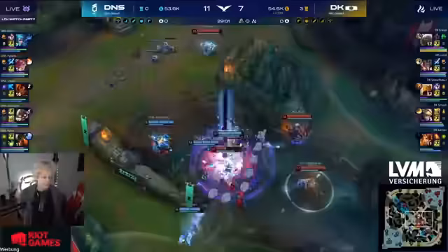 03:28:23Damwon hat das Best-of-5 gegen DNS klar mit 3:2 gewonnen und sich für die Playoffs qualiziert. Das Team wird am Sonntag gegen T1 um den Einzug in Hongkong spielen. Der Streamer lobt den Run von DNS, der von Platz 10 auf Platz 5 kam, und hebt die starke Performance von Smasch hervor, der in allen drei Spielen als MVP auffiel und brachiale Lane-Dominanz zeigte.