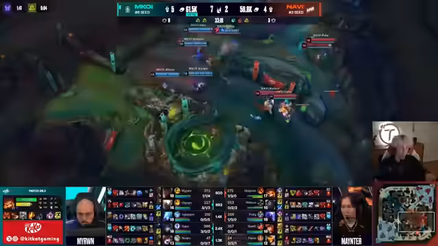 08:15:13Das Spiel endet für Navi mit einer deutlichen Niederlage, die auf mehrere Gründe zurückzuführen ist. Analysten kritisieren die Drafting-Entscheidungen, besonders die Champions Corki und Nocturne, die sich in der Play-off-Phase als ineffektiv erwiesen haben. Die Drafts der Gegner erscheinen überlegen und nutzen Meta-Champions optimal, während Navi ihre eigene, nicht funktionierende Identität zu finden scheint.