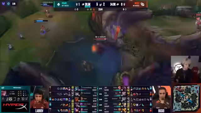 11:34:59Nach einem langen und holprigen Spiel, das über 50 Minuten dauert, gelingt es G2 schließlich, das Spiel für sich zu entscheiden. Der dramatische Höhepunkt erreicht seinen Höhepunkt, als beide Teams gleichzeitig eine Base Race starten. G2s kompromisslose und strategisch kluge Durchführung führt zum Nexus-Tor, wodurch sie das Spiel für sich entscheiden. Der Sieg ist der Beweis für ihre Dominanz in der Europa Playoffs und sichert ihnen den Einzug in die nächste Runde.