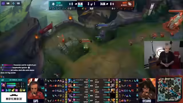 09:31:01Die Diskussion konzentriert sich auf die Mid-Lane Matchups von Kai'Su gegen G2, insbesondere Kai'Su gegen Caps. Kai'Su wird als sehr starker, koreanischer Mid-Laner beschrieben, der mit dem Coach Buzio ein starkes Duo bildet und als Schlüsselspieler für den Erfolg von KCOR gilt. G2 wird auf Caps fokussiert, der als der dominante Spieler des Westens gilt. Ein zentrales Thema ist, dass G2 in der Regular Season unterdurchschnittlich abgeschnitten hat, während KCOR Favorit ist und sich durch Importe und eine starke Organisation den Aufstieg erkämpft hat.