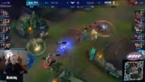 10:13:10Ein aggressiver, aber letztlich gescheiterter Initiierungsversuch auf die gegnerische Gwen wird analysiert. Der Versuch wurde mit aggressivem Flash und Ulti unternommen, was jedoch fehlschlug. Der Streamer bewundert die Kühnheit dieses Manövers und stellt sich vor, wie dieses Spiel entscheiden könnte, wenn es erfolgreich gewesen wäre. Dabei wird auch die Leistung von Broken Blade hervorgehoben, welcher das Game durch seinen Schaden dominiert.