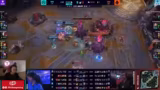 03:17:23Noah und seine Teamkollegen gewinnen den Fight deutlich. Der entscheidende Moment ist ein 1200er Smite gegen ein 900er Smite, was Giant-X das Objekt sichert. Ezreal kommt zu spät, um einzugreifen, und John verliert sein Flash. Giant-X setzt nun den Jax erfolgreich ein, der durch sein Outplay den Skimmer tötet. Miss Fortune in der Backline kann dem Druck nicht standhalten, und Giant-X nutzt den Momentum-Gewinn, um den Herald zu spawnen und den mittleren Turm zu zerstören. Dies verschafft dem Team einen massiven Vorteil.