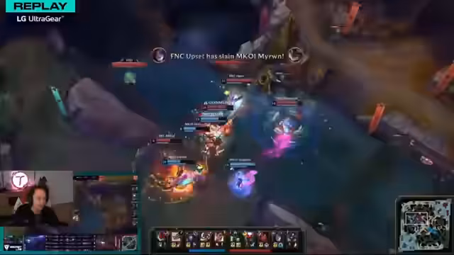 06:48:49Im späten Spiel entscheiden sich die Teams für einen Fight um den Nashor. Fnatic fängt Movistar dabei ab. Upset mit Kai'Sa hat bereits mehrere Items und ist fast unbesiegbar. Movistar verliert den Fight und dabei wichtige Objekte. Der Streamer hebt den erfolgreichen Lane-Swap von Fnatic hervor, der Kai'Sa stark machte und lobt die Draft als 'insane', die er selten sieht.