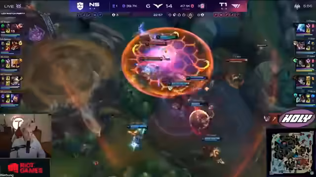 03:20:13Die Erste Spielphase des Matches T1 gegen NS wird eingeleitet, mit Diskussionen über die Spielstrategien der Teams. Der Streamer analysiert die aktuelle Situation von T1 und vergleicht sie mit Leistungen der Vergangenheit, insbesondere gegen Gen.G und HanwhaLife. Es werden frühere Matchup-Erfahrungen und saisonale Entwicklungen thematisiert. Dabei wird auch auf die Rolle von Zeus als Top-Laner eingegangen, der durch gute Plays für Aufsehen sorgt.